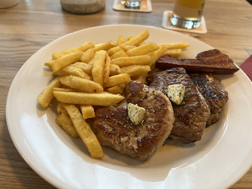 Reanimation... Wir waren jahrzehntelang gerne Gäste hier und hatten auch den Eindruck, dass die Betreiber die Krisenzeiten positiv und fair hinkriegten - teurer, klar - aber nicht gleichzeitig weniger und sparsamer. Dann wurden die Schnitzel kleiner, die Reisportionen weniger (auch bei weggelassenen Pommes), und als im letzten Dezember die Schmorzwiebeln schwarz frittiert waren, sind wir traurig weggeblieben. Gottseidank aber nicht endgültig - wir waren jetzt wieder mal da und was wir erlebt haben, war viel besser als erwartet: Das Essen prima und reichhaltig - die Leber wie immer perfekt, die Zwiebeln besser als jemals, Ajvar frisch und pikant, der Burger mit einem Patty auf den Punkt, und die Pommes knusprig - was will man mehr? Vielleicht noch eine aufmerksame und freundliche Bedienung - kein Problem, hatten wir auch. Wir sind über diesen Besuch froh, denn jetzt haben wir wieder ein Lokal, auf das wir uns...