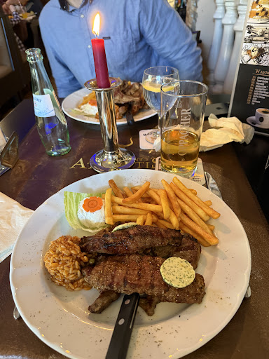Read moreTja, wo soll man da anfangen... Wir saßen anfänglich im Lokal, da es aber sehr warm war und die Klimaanlage, wegen Corona, nicht betrieben werden durfte, fragten wir, ob wir doch noch in den Außenbereich wechseln durften. Unsere Getränke waren schon am Tisch, diese kamen auch recht zügig. Die Salate und unsere Vorspeise brachte der Kellner gerade mit. Der Kellner brachte uns daraufhin hinaus, sah aber nicht erfreut aus, eigentlich war er sogar recht unfreundlich! Draußen angekommen kam dann auch recht zügig die Hauptspeise, unsere Teller der Vorspeise standen jedoch noch und wir mussten diese selber beiseite räumen. Unsere Vorspeisenteller standen auch dann noch etwas länger... Das Essen ist absolut hervorragend. Wir hatten 4 verschiedene Hauptgerichte und alle 4 haben sehr gut geschmeckt. Aber die Bedienung ist absolut unterirdisch. Alle laufen völlig verpeilt durch die Kante, gucken, sehen die Arbeit, machen aber nix und gehen wieder. Wir haben mehrmals versucht der Bedienung klar zu machen, dass wir bezahlen wollen. Aber trotz direkten Ansprechen, ging die Kellnerin absolut unbeeindruckt an uns vorbei. Und am Ende wurden wir mehrmals vergessen. Da wir heute einen besonders guten Tag haben und das ganze mit Humor gesehen haben, hatten wir trotz der grottigen Bedienung einen recht unterhaltsamen Abend. Besser als jede Comedy im Fernsehen. Aber wir haben, und ich überlege noch jetzt, ob ich deshalb ein schlechtes Gewissen haben muss, keinen Cent Trinkgeld gegeben. Aus diesem Lokal könnte man richtig viel machen, wenn man seinen Gästen ein winziges Lächeln schenken würde... Vielleicht geben wir dem Lokal bei Gelegenheit eine...