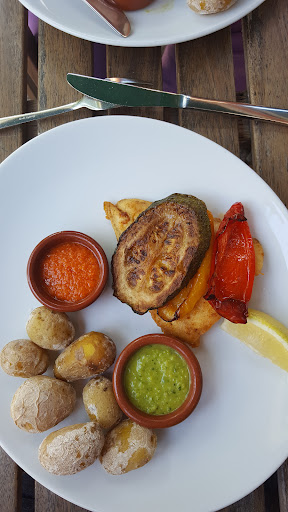 Read moreDas Tagesgericht am 15.8.17 war Fisch mit Gemüse und Kartoffeln. Zusätzlich hatte ich eine kleine Vorspeise mit gebratenem Gemüse und Knoblauchdip und ein paar Oliven mit Feta. Gut, bei Oliven und Feta gibts nicht viel verkehrt zu machen und doch schafft es der ein oder andere. Hier jedoch war alles frisch und lecker. Die Vorspeise war sicher keine große Kochkunst und doch stach der Knoblauchdip hervor. Dieser schien selbstgemacht und war sehr gut, nicht zu aufdringlich, aber dennoch intensiv. Das Gemüse war gut und ebenfalls frisch. Der Hauptgang war sehr gut, Fisch auf den Punkt, das Gemüse passte sehr gut dazu, einzig die Kartoffeln wollten mir nicht gefallen, diese waren sehr trocken und auch der Dip hat da nicht wirklich geholfen, wobei der wiederum gut war. Ich komme gern wieder, verzichte dann aber auf die Kartoffeln und nehme lieber...
