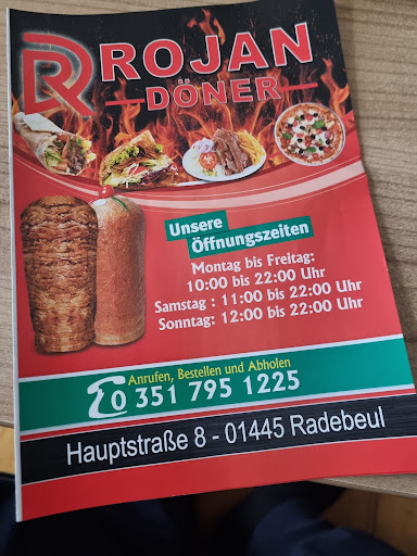 Das Essen bei Rojan Döner, ist im Vergleich zur Auswahl der Gerichte, nicht wesentlich anders als bei konkurrierenden Lokalen. Auch der Preis unterscheidet sich nicht sonderlich zu anderen Dönerläden in der Gegend. Die Qualität, der Geschmack und die Frische, der von mir probierten Gerichte, meist Döner oder Dürüm in den verschiedensten Varianten ist bisher immer sehr gut gewesen, was mich zum regelmäßig wiederkehrendem Gast macht. Das Personal ist nicht übertrieben sondern normal freundlich und service orientiert. Es ist stets sauber und auch im Blick auf die Theke und dahinter sind keine Mängel...