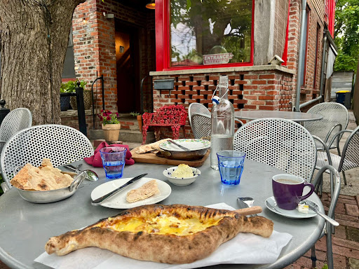Lovely sitting area outside on the street, when it got a bit cold I went inside. Was very warm and the interior was unique and fancy. In the summer it would be the SPOT outside!