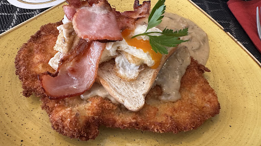 Read moreDas Essen war sehr lecker. Das Preis Leistungsverhältnis war absolut okay. Habe erst etwas später gesehen, das es außer Salat keine Beilagen gibt. Diese müssen extra hinzu bestellt werden. Die Kellnerin die unsere Essens Bestellung aufgenommen hat, war etwas ruppig in der Art. Ihre jüngere Kollegin hingegen war stets umsichtig und fragte ob alles okay sei oder wir noch etwas zu trinken Haben wollen. Das Ambiente is schön und klar strukturiert. Auch wenn es heute 28.12.23sehr voll gewesen ist. Der Tisch an dem wir saßen hatte jedoch den Nachteil daß ich die Gespräche zwischen den Kellnern mitbekommen habe . Hier wurde sich lustig amüsiert darüber wie scheinbar andere Gäste essen und die Angestellten darüber diskutierten wie wer was gemeint hat, als er mit seiner Kollegin gesprochen hat. Sowas gehört maximal hinter eine geschlossene Tür wo es kein anderer mitbekommt. Nachdem wir unsere 170€ bezahlt haben, wurde uns dann noch ein Absacker angeboten. Die Toiletten waren sauber. Die Erreichbarkeit gut. Lediglich das ständige klingeln aus der Küche das das Essen fertig ist, nervt...