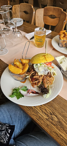 Read moreWir waren Pfingstsonntag '23 zum Mittagessen zu zweit dort. Wir haben - obwohl wir nicht reserviert hatten, direkt einen Tisch zugewiesen bekommen. Es gibt eine Menükarte. Ich hatte drei Schweinefilets mit Pfeffersauce, Kroketten und Salat. Die Qualität war sehr gut, die Sauce war nicht die Stärke des Gerichtes. Es gab eine Spargelcreme Suppe mit Kochschinkenstreifen und als Dessert eine helle Creme auf Kirschen mit Sahne. Das zweite Gericht war ein Spargelgericht. Für das Essen kann man sehr gut in das Restaurant fahren, das Ambiente in einem Saal mit Kaufartikeln (Wanduhren und Kunstobjekte) wirkt etwas lieblos ausgesucht und hat keinen schönen"roten Faden". Die Toiletten liegen ebenerdig, mindestens die Herrentoilette ist für körperlich eingeschränkte Personen durch die Enge eingeschränkt zu benutzen. Es gibt eine Aussenbestuhlung und ca. 15 - 20 kostenlose Parkplätze am Haus. Der Service ist...