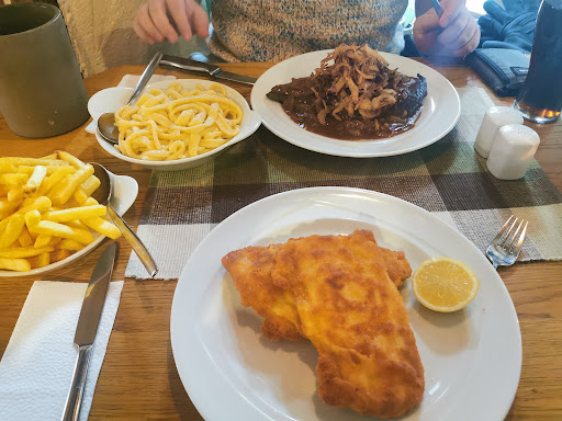 ( Nur der Beilagensalat u. die Bratkartoffeln könnten, für uns persönlich, etwas mehr „pfiff“ vertragen.)