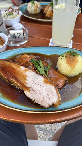 Read moreI went to this restaurant 2 days in a row, once for lunch and for dinner. The Wildburger is fantastic, contains cheese, cocktail sauce and cranberries which gives it a unique taste. The selection of side dishes is also great, containing for example French fries, wedges, roasted potatoes, grilled corn etc. Other than that, Zwiebelrostbraten tasted really good too. There's also a great selection of beverages ranging from Bavarian beer (Hofbräu München/Franziskaner) to softdrinks. The restaurant also offers fresh fish from own fishpond. As for desert I recommend Bienenstich which is made with local honey, paired with herb tea, also homemade. The restaurant also sells products from a local farm such as honey (which is used in Bienenstich) or jam. The location is quiet and has an Alpaca farm nearby which is really cute. Can...