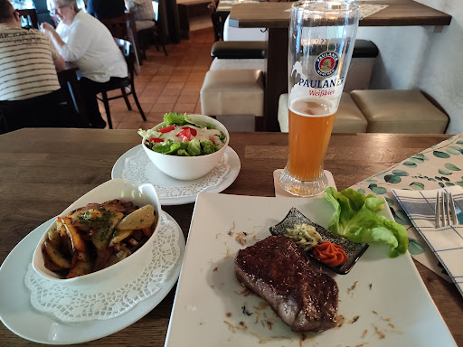 Gutes Essen, normale Portionen. Geschmacklich war es (für mich) sehr gut, hat gut geschmeckt. Ich hatte ein Schnitzel; man sollte bei großem Hunger durchaus eine Vorspeise in Betracht ziehen, um satt zu werden. Leckeres Dressing beim Salat. Pfeffersauce beim Schnitzel war handwerklich gut, etwas zu scharf - aber das ist Geschmackssache. Die Bedienung war okay für die Lage und das Preis-/Leistungsverhältnis. Da verrutscht schonmal was beim Hinstellen und ist eben nicht ganz perfekt. Aber nett und aufgeschlossen. Beim Bezahlen war es dann wichtiger, zuerst ein Telefonat anzunehmen. Der Gastraum ist sehr wenig schallisoliert, so dass man - gewollt oder nicht - Gespräche von anderen Tischen mitbekommt und eine durchaus unangenehme Grundlautstärke...