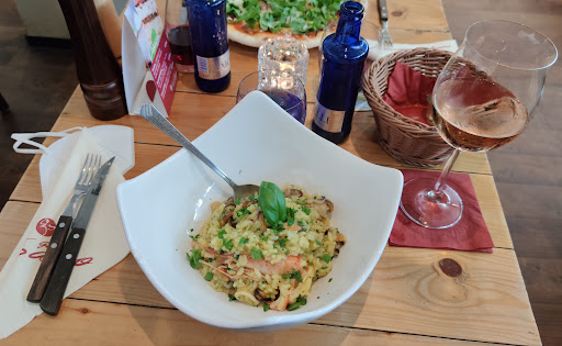Wir waren heute zu dritt essen, Elternit Kind und waren sehr verärgert, weil über 1 Stunde auf unser Essen warten mussten. Es war viel los ja, aber wir kamen mit unserem 4 jährigen Kind und der Kellner hätte uns sagen sollen, dass es so lange dauert. Es war ohnehin schon sehr knapp zeitlich für ein Kind diesem Alters, was auch nicht zu übersehen war. Als dann das Essen endlich kam und wir wirklich sehr verärgert waren, frage ich den Kellner nach Gewürzen znd Öl und dieser stellt mir einen Pfefferstreuer hin, bei dem der Deckel offen war und ich streue mir den halben Pfeffer aufs Essen. Ich habe gekocht innerlich. Das Öl mit scharfem Gewürz war in einem Schälchen angemacht, für das dann auch kein Löffel vorhanden war......