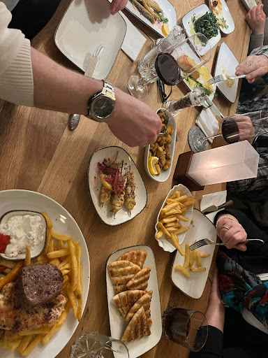 Read moreWir waren zu viert und haben uns, um einmal alles zu probieren, insgesamt 12 kleine Vorspeisen geteilt....alle samt waren hervorragend, schmackhaft, frisch und hervorragend gewürzt. Kein Einheitsbrei😊. Dazu hatten wir einen sehr leckeren, trocken-fruchtigen Rose. Hauptgerichte hatten wir nicht, dafür aber einen sehr leckeren Nachtisch, Halva-Eis, selbstgemacht, sehr interessant und empfehlenswert. Dazu einen ausgezeichneten Espresso. Auch nach dem Essen ging es uns allen gut, gesättigt, aber nicht voll und keine unangemehmen Nachwehen. Die Einrichtung schwingt zwischen angesagt modern, gemütlich, traditionell und rustikal, aber an keiner Stelle überladen... Eine interessante Mischung, die insgesamt sehr harmonisch wirkt. Heraus stechen die großen, in schwarz weiß gehaltenen Fotos von Anthony Quinn aus Alexis Sorbas. Gemütlicher Eingangsbereich mit toller Theke und Sitzgelegenheit runden das Ganze ab. Die Bedienung war zu Beginn noch recht mürrisch, aber flink, taute im Laufe des Abends zusehends auf und wurde gästezugewandter. Ein sehr schöner Abend mit gutem Essen mit prima Ambiente. Ein Besuch lohnt sich...