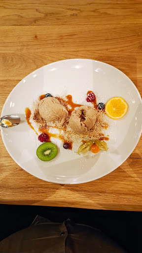 Wir waren ganz spontan hier, hatten nur gehört es soll gut sein, mehr nicht. Allerdings darf man hier kein typisch griechisches Restaurant erwarten (Riesenportionen, alles in Metaxasauce und Tsatziki ertränkt und jedes Gericht mit Pommes und Souvlaki). Gottseidank. Denn hier wird richtig toll gekocht. Die Lammschulter aus dem Ofen war aromatisch, zart, saftig und die Beilagen waren wirklich grandios, die Backofenkartoffeln mit knuspriger Kruste, selbst das Gemüse hatte ordentliche Röstaromen bekommen und war trotz allem knackig. Der sautierte Lachs ist auf den Punkt gekommen, war köstlich und saftig, die Senf-Orangen-Sauce kann man einfach als hervorragend bezeichnen. Das anschließende Dessert war hübsch drapiert und einfallsreich.