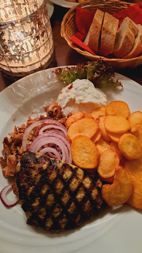 Essen: Hat leider schlecht geschmeckt. Das Rumpsteak für 18,50€ war nicht medium, sondern fast durch. Die Folienkartoffel hatte eine pampige Konsistenz. Das Tzatziki war selbst gemacht und hat gut geschmeckt. Insgesamt war die Portion nicht sättigend.