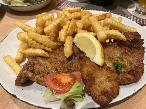 Hier unsere Argumente: Preis passt nicht zur Portion (Schnitzel so groß wie woanders ein Kinderschnitzel) möchte man sein Jägerschnitzel paniert, zahlt man einen Aufpreis (!!!) Jägersoße schmeckt nach Soßenbinder und Champions aus der Dose Wer einen Beilagensalat möchte, zahlt extra! Bei einem panierten Jägerschnitzel, sind wir dann schon bei 14,50 Euro!!! (Man bedenke, dass das ein Biergarten ohne Bedienung ist. Essen muss selbst geholt werden!) Triologie vom Käse! Ein super kleines Portionchen, von dem man nicht satt wird. -Ziebeleskäs- 7,50 Euro (!!!) Für Franken geht das gar nicht. -Das war überhaupt der Oberhammer: Wir sind Sonntags eine halbe Stunde vor Schluss gekommen und es gab nur noch Käseplatte und Gulaschsuppe! Drei winzig kleine Fleischstücke fand man darin. Keine Paprika, wie erwartet, sondern Pilze. Eine kleine Schale Suppe mit einer Brotscheibe: 6,90 Euro!!!!! Gehts noch? -Dann gabs einmal einen Schaschlikspiess - viel zu klein die Portion und viel zu wenig Pommes drauf.