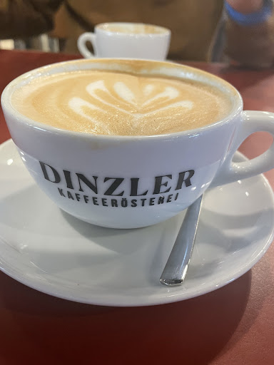 Fazit: Wem guter Kaffee und Essen das Geld wert ist, sollte hingehen, aber auf einen guten & freundlichen Service ist nicht immer Verlass. Dieser sollte aber meiner Meinung nach in diesem Preis mit enthalten und ein Zeichen guter Gastfreundschaft sein. Ich war bisher zwei Mal im Dinzler Hochstrass. Über das Preis-Leistungs-Verhältnis lässt sich streiten. Für gute Produkte und guten Service sollte man aber bereit sein, einen Preis zu zahlen. Der Kaffee ist wirklich hervorragend und das Speisenangebot ist riesig. Der Kuchen ist lecker, aber die Stücke fallen je nach Tag sehr unterschiedlich groß aus. Folglich ist hier das Preis-Leistungs-Verhältnis ein wenig Glücksache. Großes Verbesserungspotential sehe ich aber im Service. Die Kellner an beiden Tagen neigten dazu, sich sehr kurz zu halten und nur wenig zuzuhören. Blickkontakt gab es kaum welchen, was mir als Gast das Gefühl gibt, nicht als Person wahrgenommen zu werden. Bei unserem zweiten Besuch wurden wir erst angesprochen, nachdem wir den gesamten Gastraum nach einem freien oder nicht reservierten Tisch abgesucht hatten. Wir befanden uns sehr mittig, als ein Kellner uns seine Hilfe anbot. Bevor wir ihm mitteilen konnten, dass wir gerne im vorderen Bereich (nicht bei der Kinderecke) sitzen wollen, war er schon weg zum einem freien Tisch. Zu diesem mussten wir ihn erst verfolgen um ihm das mitzuteilen. Nachdem wir unseren Wunsch geäußert hatten wurden wir nicht zu einem anderen Tisch begleitet, sondern mussten mehr oder weniger hinterher rennen (!). Der Kellner selbst machte einen kleinen Witz (sympathisch), auf den wir eingingen und er dann sehr kühl und abweisend reagierte. Die weitere Bedienung war in Ordnung. Meine Begleitung hatte um halb 5 kein Getränk mehr und antwortete auf Nachfrage, dass sie im Moment keines möchte. Um dreiviertel 5 war alles am Tisch aufgegessen und leer getrunken. Wir hatten ein gutes Gespräch und uns fiel erst um etwa 5 auf, dass ich noch nicht gefragt wurde, ob ich noch etwas möchte. Wir ließen es drauf ankommen. Tatsächlich kam eine Kollegin dann um kurz vor 6 (Ende der Öffnungszeit) und bat uns zu bezahlen, da sie ja gleich schließen würden. Es verging eine ca Stunde, in der wir zu zweit jeweils noch mindestens ein Getränk hätten trinken können - was für den Gastgeber ja auch mehr Umsatz bedeutet. Wir gingen beide mit ein paar Fragezeichen nach Hause. Vor allem, weil die Kellnerin auf einen (wirklich nett gemeinten) Hinweis, dass wir auf schon früher gezahlt oder etwas bestellt hätten, sehr patzig reagierte. Dafür hätten wir vielleicht Verständnis aufbringen können, wenn um die Uhrzeit und direkt davor sehr viel los gewesen wäre. Die meisten Gäste sind aber schon gegangen. Wenn Hochbetrieb ist, kann man nicht erwarten, dass man mit der gleichen Aufmerksamkeit bedient wird, wie bei weniger Betrieb, aber Augenkontakt und ein freundlicher Umgangston kosten nicht mehr Zeit. Bitte behaltet die Qualität eurer Produkte bei, versucht dafür aber bitte eure Mitarbeiter im Umgang mit Gästen zu schulen. Für mich ist das ein sehr...