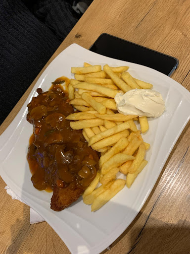 Schnitzel in der Fritteuse gebraten und das auch noch ZU lange, Panade krachte beim Anschneiden gleich über den Teller. Pommes innen hohl, da ebenfalls viel zu lange in der Fritteuse, ebenfalls knüppelhart( Trockenpommes, dürfen nicht so lange rein ), frische Schnitzel brät man auf der Pfanne- in der Ausnahme, KANN man ein Schnitzel, welches schon fertig war vorsichtig in Fritteuse erwärmen, wir reden hier von KANN! Sollte aber nicht. Hier konnte von Fleisch bei dem armen Ding nicht mehr die Rede sein. Mayonnaise, musste man suchen, vllt ein gestrichener Esslöffel- gerade. Die Jägersauce war minimalistisch in einem Klumpen in der Mitte des Schnitzels, wie eine Statue, drapiert, sehr schnittfest und voll von Saucenpulver. Davon mal abgesehen, setze die Dame, die aber sehr nett war, voraus das wir die gesamte Rechnung zahlen, blöde Situation, das ich von meiner Freundin, mein Geld zurück verlangen musste. Es war ein Versuch wert, allerdings setze ich andere Prioritäten- ich weiß, wie Geräte in einem Imbiss funktionieren, wenn man richtig damit umgeht. Es war zwar alles irgendwie essbar, aber in unserer Nähe, gibt es in Sachen Schnitzel 2x gleich größere Konkurrenz, beide vom gleichen Anbieter, also, nochmal kurz überdenken, dass System.. Es war trotzdem ganz nett, dort, vllt probiere ich es in ein oder zwei Jahren...