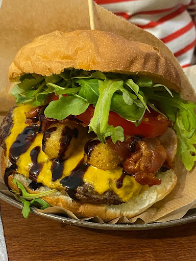 Read moreLeckere Burger&originelles Dessert. Die Karte ist überschaubar, bietet aber eine gute Auswahl an Burgern (z.B. Classic, Bacon Cheese oder Jalapeño) und Pommesvarianten (Süßkartoffel, klassisch etc.). Besonders sind die frittierten Schokoriegel - wer will, auch mit Eis. Die Burger sind auf den Punkt (medium) und die Burgerbrötchen sind selbstgemacht bzw. extern gut eingekauft. Die Größe der Portionen ist absolut sättigend und das Preis-/Leistungsverhältnis stimmt. Getränke erhält man via Selbstbedienung und bestellt wird an der Theke, aber das Essen den wird an den Tisch gebracht. Das Lokal hat eine überschaubare Anzahl an Plätzen - zu Stoßzeiten kriegt man eventuell keinen Platz. Es gibt ein paar Sitzplätze direkte paar Treppenstufen hinauf und unten an der Theke/ an der Küche - da kriegt man aber den Durchlaufverkehr und die Zubereitung mit, was dem ein oder anderen eventuell etwas zu unruhig ist. Der wenige Platz wurde eben bestmöglich ausgenutzt. Das ist der einzige Grund für den kleinen Abzug. Service und Essen sind gut. Ausreichend kostenlose Parkmöglichkeiten...