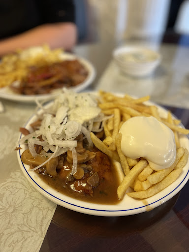 Wir haben einen Souvlaki-Teller und einmal Currywurst/Pommes bestellt. Das Essen war lecker und Preis-/Leistungsverhältnis stimmt auch. Einen richtigen Service gibt es nicht, d.h., die Bestellung wird an der Theke aufgenommen und das Essen später an den Tisch gebracht. Das Personal ist sehr freundlich. Das Ambiente empfanden wir nicht als einladend, daher nur 3 Sterne. In einer Ecke standen die Getränke Kisten, das sah nicht sehr einladen aus. Das Kunden-WC ist sehr eng, wäre ich etwas breiter gewesen, hätte ich Probleme gehabt. Der Abfalleiner war voll, so dass die benutzten Papierhandtücher auf dem Boden lagen.
