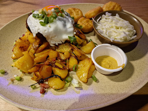 Read moreWir haben fĂŒr 6 Personen telefonisch einen Tisch reserviert, auf den ersten Anschein hat dies auch gut geklappt. Leider wurde uns am Telefon nicht mitgeteilt, dass der Tisch nur fĂŒr zwei Stunden reserviert ist. Das haben wir erst gesehen, als wir an unseren Tisch gebracht wurden und dort das Schild fĂŒr die nĂ€chsten GĂ€ste stand. Auf die ersten GetrĂ€nke haben wir leider schon 20 Minuten warten mĂŒssen. Bier und Bio Limo waren sehr lecker. Cola war abgestanden und schal. Auf unser Essen mussten wir 50 Minuten warten, bei einem frischen essen mit guter QualitĂ€t wartet man auch gerne etwas lĂ€nger, aber leider konnte die QualitĂ€t nicht ĂŒberzeugen. Wir hatten zwei HĂ€nchenschnitzel Poutinen, leider war das Fleisch alles andere als Knusprig, zudem schmeckte das Fleisch als hĂ€tte es zu lange im Gefrierschrank gelegen. Pilze machten den Anschein als wĂ€ren sie aus dem Glas. Und das essen war teilweise Kalt. Veganer Burger war gut. Currywurst-Poutine so lala laut Beschreibung mit Mayo was aber eher nach heller BBQ-SoĂe schmeckt. Bei den Chicken-Nuggets musste man leider ĂŒberlegen ob es wirklich Chicken-Nuggets oder Fisch-Nuggets sind. Insgesamt waren wir alle sehr enttĂ€uscht von dem Essen, insbesondere was die QualitĂ€t und Frische angeht. GeschmĂ€cker sind ja bekanntlich verschieden. Aber frisch und qualitativ gut war dieses Essen leider nicht. Kinder dĂŒrfen sich umsonst aus der Kinderkarte etwas aussuchen, ein wirklich sehr netter Service. Ich dagegen hĂ€tte, aber lieber fĂŒr mein Kind bezahlt, und dafĂŒr auch leckeres Essen serviert bekommen. Wir waren zum ersten Mal da. Und haben uns wegen der vielen guten Rezensionen schon sehr auf das essen gefreut aber waren leider sehr enttĂ€uscht. Unsere Freunde waren schon öfters dort essen und auch sie waren sehr enttĂ€uscht darĂŒber, dass die QualitĂ€t sehr...