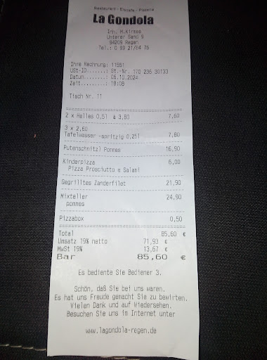 FAZIT: Im Schnitt schließt das Restaurant "La Gondola" für mich mit einer Gesamtnote 3 ab. Es ist okay, jedoch in manchen bereichen...