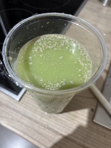 This was supposed to be a 6€ “Matcha Bubble Tea”. I did not drink it since I can tell just by the taste that it does not contain matcha, it has green artificial coloring inside because it was tainting the lips/tongue (which matcha does not do so intensely) and it was basically 90% sugar and just did not feel fresh at all. They did not ask me about sugar level or what topping and type of milk I want, they just did it straight-up without giving me a choice, as if it was already pre-made and leftover drink staying several days in fridge. After ice melted, these floating stuff remained in my drink. The hygiene around there also seems not to be the best. Can’t tell for sure if you could get sick from it, but judging by how it looks I would not recommend drinking it. I don’t mean to be rude towards anyone but this was just a really unpleasant experience that I felt needs to be considered...