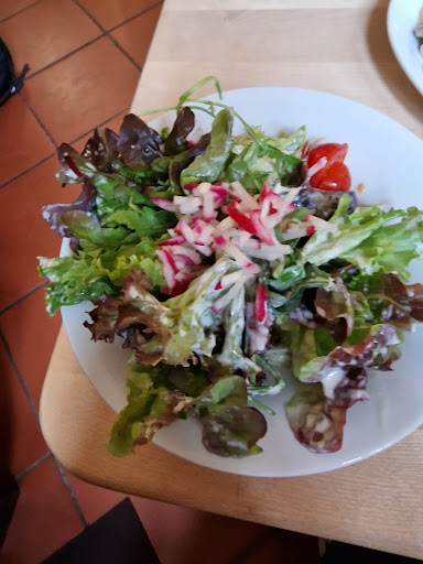 I was sitting for more than 5 minutes without being given a menu. I proceed to take a menu myself. Literally 10 seconds after having opened the menu I got a very mean mean lady with short grey hair and wearing glasses who appeared at my table. She was a real German Karen, let's call her Helga.