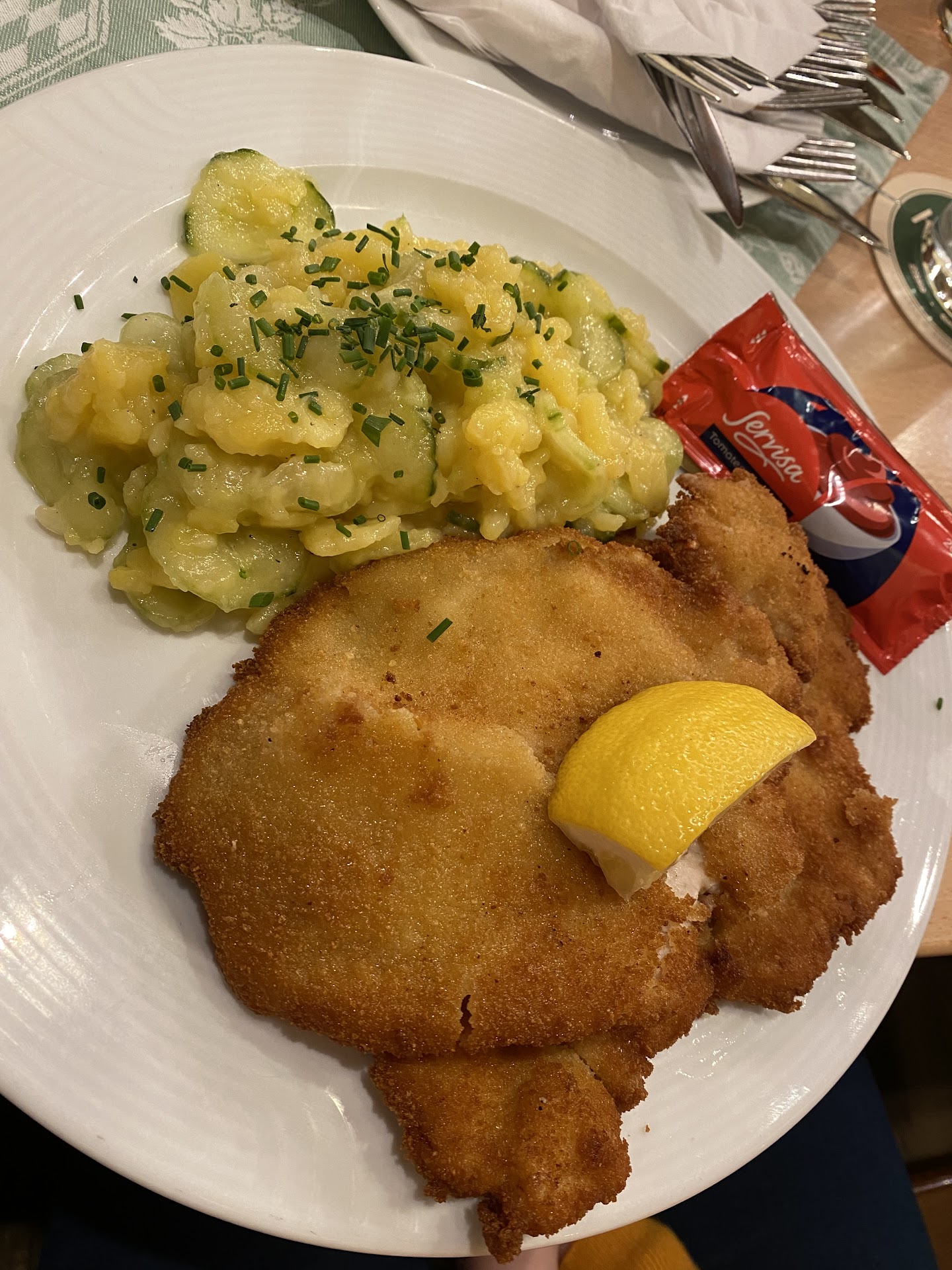 Love the food and the serving size. My friends and I were just there hrs. ago. Unfortunately, the the table assigned to us was inside and there were lots of Omas and Opas in the same room and one of them was rude. He was telling me that I was loud (I’m the only one who is not German in my group) while in fact they were the ones who are loud. There were 15 of them talking and laughing at the same time vs. 6 of us. I just wished that they did not sit us with them. Racism still exists in the old people.