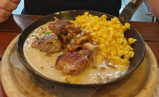 Im Winter waren wir in der Stube, toller langer Tisch, jeder hatte Platz. Die Bude war voll aber die Bedienungen auf Zack und das Essen wieder sagenhaft lecker. Diesmal waren wir zu sechst. Das Essen wieder mega lecker, egal ob Braten, Salate oder Münchner Schnitzel. Alles einfach schmackofatz und Preis Leistung absolut ok. Klar, wenn die Stube voll ist, wird es lauter, aber wir konnten uns ohne Probleme am Tisch unterhalten.