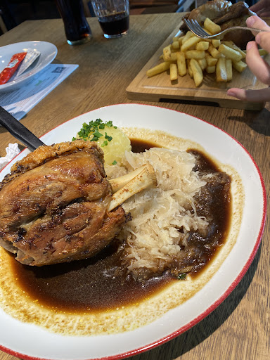 Nach ein paar Minuten kam sie zurück und erklärte, niemand in der Küche habe Haare und ob das evtl. vom Schwein gewesen sein könnte. Das fand ich etwas schade, vor allem da die Haxen hinter der Theke lagen, wo eine Dame arbeitete mit mittellangem hellen Haar, ohne Haarnetz. Aber ob es da passiert ist, keine Ahnung und nur eine Vermutung.