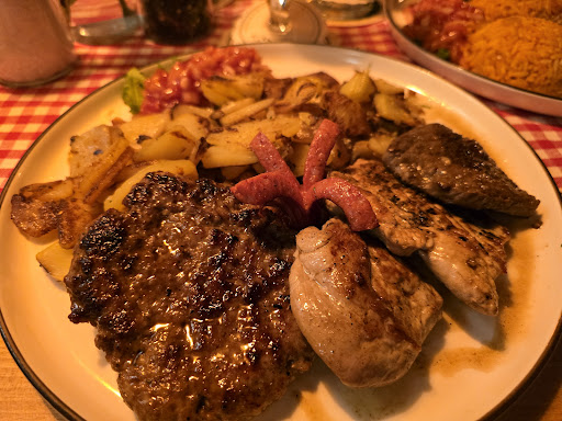 It must be noted that it took a while for one of the waiters (a father & son team) to get us the menus and even longer for us to be served once out order had been taken (around 40 minutes, while other tables that arrived slightly after us were served and had finished eating by the time out lips touched food!). Despite the service being a bit slow, the staff were friendly and even joked around with the children, making us feel at home. The wait was well-worth it, though and we all got up well-replete. We had tried the kepapce, the liver and some snitzels, served with fries. The portions are generous and the sauces delicious. The dinner cost us €58 for four people including 3 large...