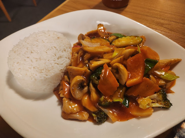 Schade war, dass das Essen (geliefert in einer Plastiktüte und nicht in der weit verbreiteten Wärmebox) worauf wir uns zwei Stunden freuen durften nur noch lau warm war.