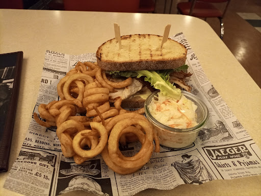 Initial review: (It was a 5 stars review) I really enjoyed my time there! The waitresses were also very friendly. I ordered the clubhouse sandwich, with curly fries and a beer: really tasty! The surrounding is also nice: a diner style with cool American music ... I will definitely tried it again, and I do hope it will preserve the...