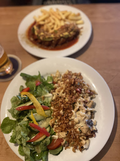 Read moreAlle Tische waren voll oder reserviert. Haben uns zu 2. dann einen Tisch mit 3 anderen Personen teilen dürfen. Es war so laut, dass man sich gegenseitig nicht verstanden hat. Musik war glaub ich keine an. Haben uns gefreut, weil die Preise ziemlich in Ordnung schienen. Meine Begleitung hat ein Schnitzel gefüllt mit Tomate und Käse bestellt und ich ein Schnitzel gefüllt mit Hirtenkäse, Peperoni und Oliven. Hatten eigentlich untereinander ausgemacht, halb halb vom Schnitzel aber ich konnte das mit Chilli überhaupt nicht essen. Es war überhaupt nicht scharf, den Käse konnte man suchen, also war gefühlt einfach nur ne scheibe Tomate drin. Hat eklig geschmeckt. Die Füllung von meinem war wenigstens lecker. Fleisch war insgesamt auch so zäh und nicht richtig dünn geklopft (ja ich weiß, es war mit Füllung, aber es war einfach zu dick!) also nicht knusprig, weder meins noch das andere. Die Panade hat auch irgendwie die komisch geschmeckt, weiß nicht ob die Semmelbrösel vllt neben irgendwas wie Geschirrspülpulver aufbewahrt werden.. Labbriger Salat als Deko und der Strunk von der Tomate als Ü-Tüpfelchen. Die Zaziki-Soße😭😭😭. Es hat einfach nach Joghurt geschmeckt.. Wie kann das passieren?? Eigentlich auch richtig knoblauchig und würzig, ne es war einfach fad. Sogar das Ketchup war würziger. Nix zum nachwürzen da gewesen, warum weiß man nicht. Alles in...