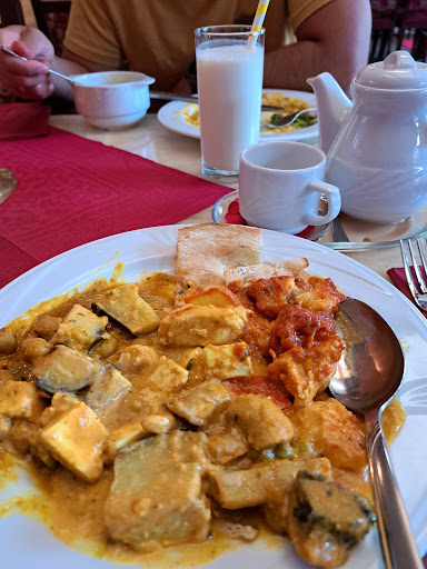 Ob es daran lag, dass wir unerwünscht waren, oder daran, das vermutlich noch zu viel vom Mittagsbuffet der letzten Tage übrig war, kann ich nicht beurteilen. Aber nichts an unserem Essen war frisch. Das üblicherweise butterweiche Tandoori Chicken war hart und selbst die verschiedenen Naans waren offensichtlich nur aufgewärmt und mit etwas Alibi-Öl beträufelt.