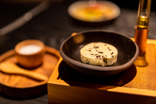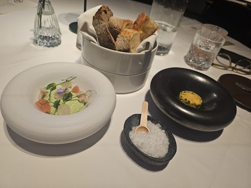 Vor dem Menü wurde ein Amuse-Gueule gereicht, bestehend aus einem herrlich frischen Focaccia mit Meersalz, fluffigem Weißbrot, Rohmilchbutter und Olivenöl.