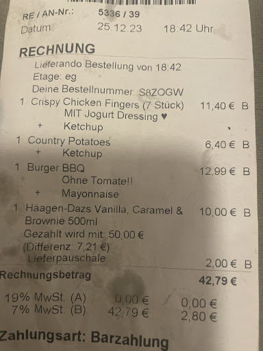 Read moreDas einzige positive! 1.: Die Gerichte sind echt gut (deswegen 1 Stern mehr). War es dann auch eigentlich schon mit dem positiven. Ich schreibe eher selten Bewertungen da mir es dann echt am Herzen liegen muss dieses zu tun. Ich hätte tatsächlich auf die Bewertungen meiner Vorgänger hören sollen. Die negativpunkte: 2.: Es wohnen 2 Haushalte mit dem gleichen Nachnamen in diesem Haus. Bei mir wurde nicht geklingelt aber bei allen anderen Nachbarn (kann ja passieren) obwohl ich extra in der Beschreibung darauf hin gewiesen habe und meckert mich noch an das ich die Klingel nicht gehört habe. Ich sitze direkt vor der Klingel die sogar einen visuellen Effekt hat (sie blinkt rot)... so viel dazu. 3.: Ich hatte Chianti und Augustiner Edelstoff bestellt und bekam Lambrusco und Pils (eher schwierig, aber könnte auch passieren). 4.: Pizza Brötchen mit Käse und Schinken sind auf einmal vegetarisch (KEIN Schinken) 5.: Die Pizza ist nicht mal geschnitten (habe ich auch in die Beschreibung geschrieben), HALLO? Lest ihr überhaupt was die Kunden in das Feld (BEMERKUNGEN) einfügen? Ich kann verstehen das es manchmal stressig ist... aber wenn das Zeug innerhalb von 60 minuten (45 waren veranschlagt) da ist, kann man nicht davon ausgehen das da die Hütte brennt. Und wenn ich dann den Fahrer auf die Klingelsituation darauf hin Weise (weil ich zu dem Zeitpunkt davon ausging evtl. noch mal da zu bestellen und das nächste mal nicht meine Nachbarn damit belästigen wollte) werde ich noch von dem Fahrer...