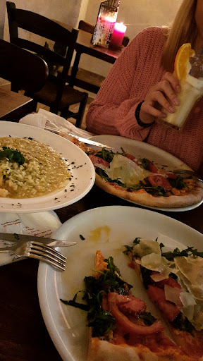 Kritik Punkt zwei: Ich war zusammen mit meiner Freundin, wir haben eine Pizza und das besagte Risotto bestellt. leider kamm die Pizza gut 5min früher als das Risotto, was ein absolutes Nogo bei zwei Personen ist!