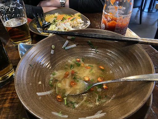 Read moreWell decorated restaurant, but both of me and my German friend felt the food tastes doesn’t deserve a Google remark score of 4.6, more a middle-level taste. Regarding the Pho mit Rindfleisch/beef I ordered, firstly, the noodle soup base as the soul of a noodle soup, tastes very normal, does not give you a feeling wow, this is lecker. Secondly, a typical Pho will use the hot soup to heat the fresh slided beef ripe, so that it avoid being overcooked and still tastes tender, but this restaurant take the faster serving solution, that is cooking the beef in advance, then slide the beef in pieces, when making a soup, just need put the slided beef with noodle to cook in a soup, this is faster to serve, but unluckily tastes dry and nicht yummy as the typical...