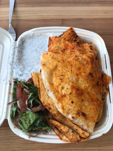 Sados adana is a small place but has delicious food, one of the few places open at this time because of the virus. The lam Kebap is rolled on a tasty red-ish flade filled with different sallates and lam meet, but with the option with chicken as well. There almost no need to go in there, because it's a tiny place so wheelchair access...