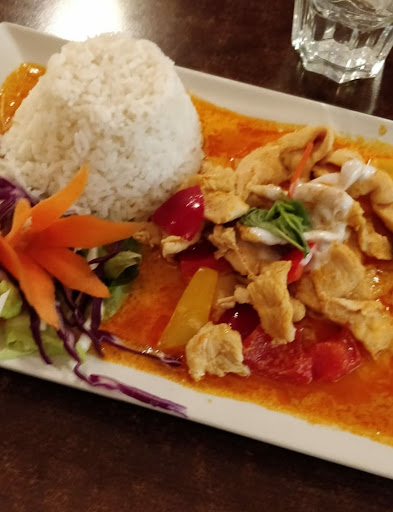 My girlfriend and I were looking for anything Asian in downtown Regensburg and happened upon this place in our google search. The place looked kind of nice and the guy that seated us and ended up serving us was really nice. I ordered a Aperol Spritz and my girlfriend ordered a white wine costing €7.50 and €5,00 respectively. My Aperol was pretty watery compared to the ones we had just had at another bar before coming here to eat. I don’t know the Thai name of the dish I ordered (number 51 on the menu) but it was a Thai chicken curry with basil. Not only was there no curry in it but it was more of a oriental fish sauce type dish. It tasted ok but what I found odd was that the chicken was ground or minced and not in pieces. Not only did this not look at all appetizing but the texture was not that great. Like I said, it tasted „ok“ but is nothing I would return for. My girlfriend said the same about her food and we agreed that we would not come back.