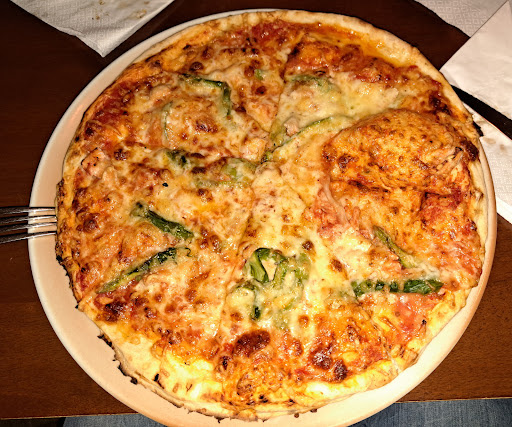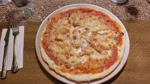 Das Team ist sehr freundlich und schnell, Kinder werden auch nett behandelt - das ist wirklich spitze! Leider ist das Essen - insbesondere die Pizza - Naja nett ausgedrückt auf Tiefkühlpizzen Niveau- Auch wenn sie definitiv selbst gemacht ist (ich konnte einen Blick in die Küche erhaschen) muss ich hier leider sagen dass ich bereits bessere TK Ware gegessen habe - dazu zu Beginn mein größter Kritipunkt - Der Boden- ungewürzt, hart, aber nicht knusprig, in der Mitte blass, dick und sieht aus als wäre er in eine Form gepresst worden wie ein Mürbeteig für Apfelkuchen- das hat für mich und wohl keinem richtigen Italiener was mit richtigem Pizzboden gemein. (Weder mit einer Pizza Roma und schon gar nicht einer Neopolitana) - Kritikpunkt 2 : Die Tomate soße - darüber lässt sich sich sicher streiten- mir persönlich war sie zu sauer bzw hatte sie einen Essiggeschmack. Der Unterschied von "Steinofen" und Normal ist mir auch nicht ganz ersichtlich, einen Steinofen habe ich nicht gesehen-Der Belag ist ok - keine große Auswahl-aber in der Karte gibt's diese dafür in allen möglichen und unmöglichen Kombinationen ; - Preis/Leistung - Getränke 👍 gut bei der Pizza wäre ich nicht mehr bereit diesen Preis zu bezahlen .. Vielleicht ist mein "Großstadtgaumen" auch nur mit richtigen und genialen...