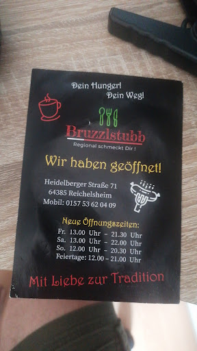 Read moreEin zufälliger Stopp für uns, 2 Kinder 5 Erwachsene, mit unvergesslichen Momenten! Wir waren auf dem Weg von Heidelberg nach Brensbach, als wir bei eintretender Dunkelheit einen notdürftigen Stopp an der benachbarten Tankstelle einlegen mussten. Die Bruzzlstubb zog mich gleich an. Es sah sehr gemütlich aus und lud auf einen Glühwein förmlich ein. Bei diesem blieb es nicht. Wir wurden so toll empfangen, dass wir noch eine Weile länger blieben. Da wir in Brensbach zum Abendessen wollten, konnten wir leider keine Köstlichkeiten dort probieren. Dennoch haben wir uns Hausmacherwurst mitgenommen die im Übrigen sehr gut geschmeckt hat. Als wir von unserem erlebnisreichen Tag erzählt hatten, an dem meine Schwester in Heidelberg ihren Antrag bekommen hatte, wurde kurzerhand eine Flasche Sekt geöffnet und wir haben gemeinsam angestoßen. Das war ein so toller Moment, dass ihr sicher ewig in Erinnerung bei uns bleiben werdet. Vielen Dank für den schönen Abend. Wir werden sicher wiederkommen!