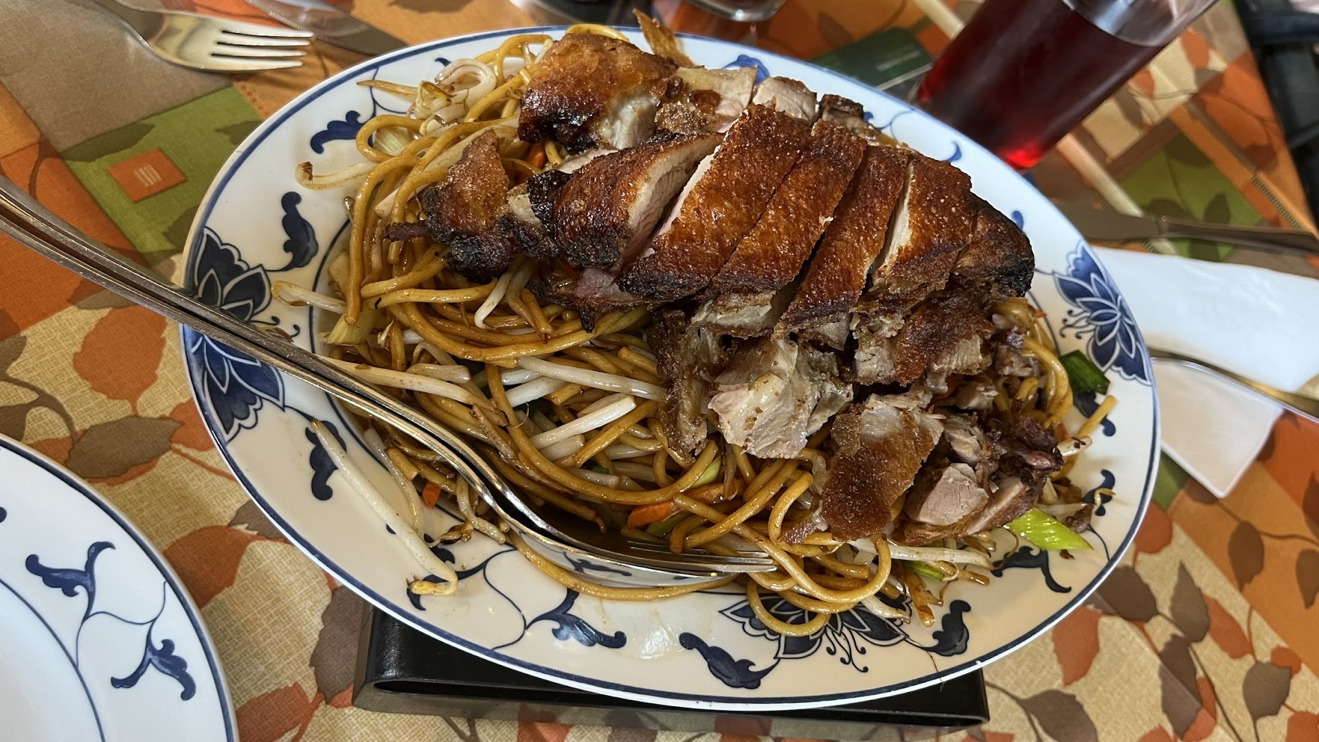 Read moreFast kompliziert. Wir hatten die Nummer 39, Hühnerbrustfilet mit Champions, Bambus + Cashews sowie Kung - Po - Ente scharf. Ok. Die Champions waren echt sehr gut. Die Ente als solches, sie lag oben auf, ebenfalls. Und nun meine Meinung zum Rest (erwähnen möchte ich, dass mein Freund EIGENTLICH kein chinesisch isst und dieses x fand er es lecker!). Das, was dieses Essen chinesisch macht, waren die Bambussprossen. Mehr nicht. Der Reis war kein bisschen klebrig. Stäbchen-Essen völlig ausgeschlossen. Die Kung-Po-Enten-Soße schmeckte sehr streng nach Tabasco und war auch in diesem Schärfegrad. Zum Hühnerbrustfilet gibt es nichts zu sagen. Neutral. Was ich unbedingt noch erwähnen möchte ist, dass hier ausschließlich Barzahlung möglich ist! Wer am Liebsten deutsch isst, ist hier richtig, wer chinesisch möchte, sollte woanders sein...