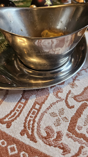We arrived by luck with 4 of us because of highway traffic, driving back to NL: we decided to eat here: nicely sitting outside in the sun, quiet and very nice scenery: we were kindly helped by a young man: the beer and food (mostly schnitzel) was great: good choices of the meat and of the side dishes. And cooked very well. The single remark I need to make is that we as NL had a hard time paying, as eventually only cash worked....