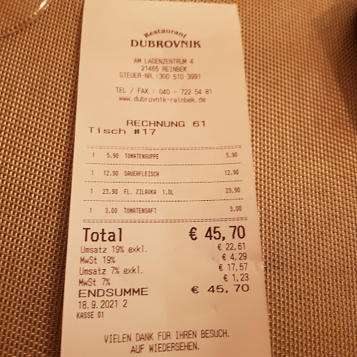 Preis-Leistungs-Verhältnis: Das Preis-Leistungs-Verhältnis im Restaurant Dubrovnik ist mehr als fair. Die Qualität der Speisen steht in einem ausgezeichneten Verhältnis zum Preis, was den Besuch hier zu einem echten Genuss macht.