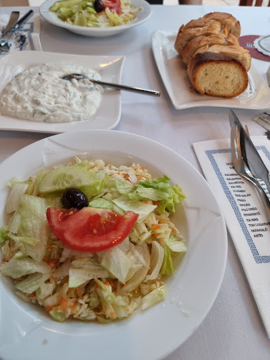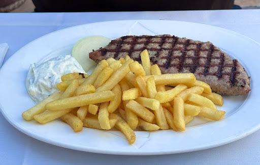 Das Gyros war eine herbe Enttäuschung: knorpelig, fettig und qualitativ minderwertig – weit entfernt von dem, was man in einem griechischen Restaurant erwarten würde. Auf dem Teller befand sich gerade einmal ein kleiner Klecks Tzatziki, was offensichtlich kalkuliert ist, um Gäste dazu zu bewegen, mehr zu bestellen. Als wir tatsächlich eine Portion nachbestellten, wurde uns dreimal deutlich gesagt, dass es „aber extra kostet“ – mit einem Unterton, der eher abschreckte als kundenorientiert war.