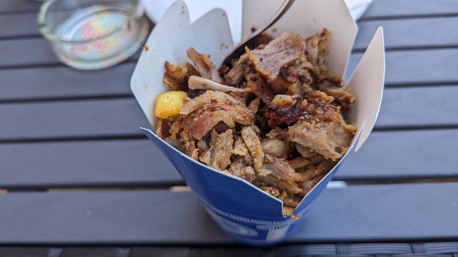 Die Portionen waren nicht groß, aber ausreichend. Das Gyros in der Box war recht lecker gewürzt, die Pita dafür fad. Die Pommes könnten etwas länger, da scheiden sich ja aber sowieso die Geister.