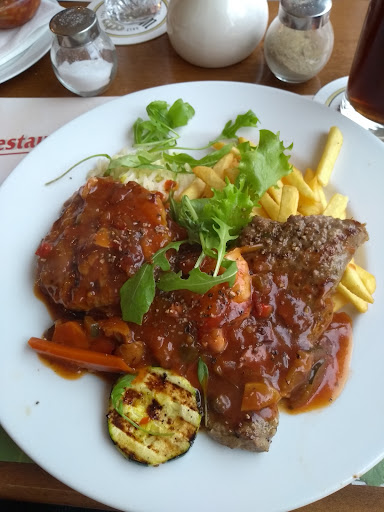 Read moreWir waren heute zum Mittagstisch dort. Cordonblue klein, dünn und gefüllt mit einer Scheibe ich kann nicht sagen ob Katenschinken oder so jedenfalls kein Kochschinken und von Käse...kaum der Rede wert. Dazu nackte Pommes, noch nicht mal ein Klecks Soße übers Fleisch, nix. Stück Zitrone dazu und es wäre ein klitze kleines Wiener Schnitzel gewesen. Mein Argentinisches Rumpsteak war auch enttäuschend. War es doch das teuerste Gericht auf der Karte und nur mit trockenen Pommes gereicht, die Champignonrahmsoße war mehr als spärlich bemessen. Fazit: Da gehen wir nicht wieder hin. So ein Preis Leistungsverhältnis...wenns denn wenigstens geschmeckt hätte. Das ist die erste Rezession die ich mit einem Stern vergebe. Aber das musste sein. Weniger als einen Stern kann man ja...