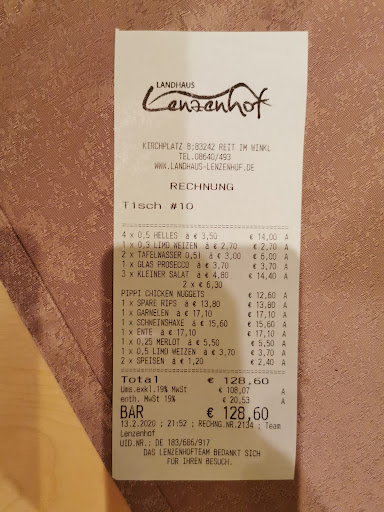 Read moreReit im Winkel. Spätsommer 2023. Gesucht wird kurzfristig ein Zimmer mit fairen Preis, wenn möglich sollte man ein Bike einstellen können, und natürlich mitten im Ort. Geworden ist es der Lenzerhof. €75 für das DZ zur Einzelnutzung sollen es sein. Mit Frühstück. Also dann. Rein ins Vergnügen. ||Das Landhaus liegt etwas der „Ringstraße (Zentrum) direkt neben der Kirche. Diese sorgt ab sieben Uhr morgens dafür, dass man das Frühstück nicht verschläft. Zum Glück dämmen die Fenster den Schall ganz ordentlich. Es gibt ausreichend Parkplätze. Bikes können im Skiraum (Eine Stufe dazwischen und eine Steckdose vorhanden) abgestellt werden. Mehr als drei wird man aber bei allen schlichterischen Fähigkeiten nicht rein bringen. Die Zimmer befinden sich im ersten und zweiten Stock. Lift gibt es keinen. Ein paar Bücher und Spiele kann man sich ausleihen. Im Winter gibt es eine Sauna. Sonst keine besonderen Merkmale. Doch, bei der Buchung über die Homepage sind 20% des Zimmerpreis an zu zahlen. Sollte das ein schlechtes Omen sein. ||Nein.||Angekommen wurde ich in Etappen (Zuerst von der Tochter, dann von der Chefin) zum Zimmer geführt. Die Tür ging auf, und ach du. Ich dachte ich hätte ein Doppelzimmer reserviert und nicht die Senior Suite. Ein Blick auf den Fluchtplan verrät, das Zimmer Nummer fünf ist zwar wirklich das größte im zweiten Stock (Direkt unter dem Dachstuhl, die Balken laufen quer durchs Zimmer), aber alle haben weit über 20 Quadratmeter. Also das Zimmer ist echt groß, in Holz gehalten (Kaum Wohnspuren) und sauber. Es gibt eine große Sitzecke, TV, Zimmersafe, eine Karaffe Wasser (Mit Zirbenholzkugel), und wir haben Zugang zu eine Balkon. Der hängt zwar etwas nach vorne, und die Bretter knarren, wird aber schon halten. WLAN ist frei und ohne Passwort. Die Abdunkelung ist okay, wenn auch nicht berauschend. Schalldämmung zur Straße, wie auch zu den anderen Zimmern ist sehr gut. Vom Gang hört man auch nicht viel (Teppichboden). Keine Klima oder Minibar (Das Waschbecken wurde zur Wasserkühlung umfunktioniert Selfman lässt grüßen). Der Fernseher ist etwas komisch programmiert. Alle Sender von A-Z. An die 160, davon die allermeisten gesperrt. Das ist aber nur minimale Kritik. Es sind sechs Steckdosen im Zimmer. Alleine die Größe und der Balkon machen den Preis direkt günstig. Einzige Kritik. Der Polster des Bettes ist für meinen Geschmack zu klein.||Das Badezimmer ist angepasst, es ist nämlich auch überraschend groß, und sauber verfließt. Die Dusche ist zwar nicht die größte, aber sie ist schnell warm, dicht, und hält Temperatur und Druck. Allerdings ist auf den Duschkopf ein komischer Belag (kein Kalk). Dazu kommt ein Dunstabzug mit Zeitschaltung, der, Moment mal. Der Dunstabzug schafft es doch wirklich den Spiegel frei von Beschlag zu halten. Das ich das noch erleben darf. Ansonsten gibt es nicht viel zu sagen. Die Handtücher passen, große Ablage in der Dusche, Föhn und Duschgel werden gestellt. Das Bad ist für den Preis im gesamten sehr gut.||Und wie üblich behandeln wir zum Schluss das Frühstück. Hier ist etwas Vorsicht geboten, denn der kleine Engel der Tochter (Etwa 3,5 Jahre) tobt durch die Gegend. Kaffee, Tee und Kakao werden frisch serviert. Genau so ein halbhart gekochtes Ei (Das sowas möglich ist). Es werden vier! Säfte angeboten und natürlich Wasser. Die Auswahl an Wurst und Käse ist ganz gut. Wir haben verschiedene Semmeln und Brötchen. Streichkäse oder Streichwurst sucht man vergebens, aber dafür gibt es eine gewaltige Auswahl an (selbstgemachten?) Aufstrichen, sowie Obstsorten. Müsli (bähh) darf natürlich auch nicht fehlen. Hörnchen gab es auch. Allerdings war um 0930 (Frühstück bis 10 Uhr) nicht mehr alles da. Früh aufstehen lohnt sich. Das habe ich dann am nächsten Tag gemacht. Da bog sich die Wurst und Käsetheke fast durch. Es gab Kuchen und noch mehr Aufstriche. Als nächstes werde ich noch vegetarisch Frühstücken, weil die Aufstriche so gut sind.||Noch eine kleine Besonderheit. Im ganzen Zimmer riecht es angenehm nach Holz. Nicht Zirbe, aber so ähnlich. Selbst meine Schuhe (Nach einer vier Stunden Radtour) vermochten diesen Geruch (Trotz geschlossener Fenster) nicht zu vertreiben. Ich hab Nachgefragt, was der Trick ist. Entweder wissen sie ihn selber nicht, oder verraten ihn nicht. ||Fazit: Am Zimmer kann fast nichts kritisiert werden. Der frische Geruch wertet es sogar noch auf. Das Bad ist an und für sich makellos. Das Frühstück ist für den Fall das man nicht zu knapp kommt gewaltig. Sicher währe es schön, wenn bis zum Schluss alles da ist, aber wir sind in keinen 4 Sterne Hotel. Und damit bekommt der Lenzerhof von mir nicht nur eine volle Empfehlung, sondern auch die...