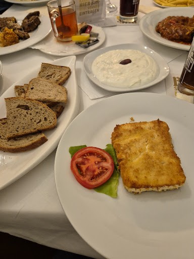 Read morePositiv war, dass man mit einer großen Truppe einen Platz ohne Reservierung erhalten hat sowie die Preise angemessen waren. Das Lokal an sich sah leider altbacken aus wie in einem alten DDR Saal... Das Essen war leider unterirdisch. Lieblos auf dem Teller platziert und vor 30 Jahren in der "Kulinarik" stehengeblieben. Ein Tomatensalat war eine große in dicke Scheiben geschnittene Tomate mit Öl und evtl. Essig sowie einem großen Schnipsel Zwiebel. Man weiß anscheinend nicht, was "Salat" bedeutet. An meinem "panierter Feta" war ein dickeres krauses Haar, weshalb ich es nicht essen konnte. Das geht gar nicht! Eine Entschuldigung gab es nicht. Auf dem Teller war als Garnierung wieder nur eine dicke Scheibe Tomate sowie ein kleines Eisbergsalat-Blatt. Meine Kollegen hatten auch lieblos gestaltete Teller sowie vom Geschmack her keine griechisch bekannten Geschmäcker präsentiert bekommen. Eher Ketchupsauce und Soßenbinder... Bifteki war ein fetter Hack-Klops... Üblicherweise beim Griechen bekanntes Knoblauchbaguette gab es gar nicht... Nur dunkle grröstete Brotscheiben, die geschmeckt haben wie auf nen fettigen Grill geschmissen... Zatziki schmeckte fad... Das Einzige was okay war, war das Lammfleisch. In das Lokal sollte mal sowas wie "Rach der Restaurant-Tester"... Leider absolut nicht empfehlenswert. Ich habe noch nie so...