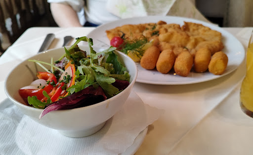 Read moreWir (8 Personen) hatten für sonntags um 18 Uhr reserviert und wurden, trotz klirrender Kälte draußen, auch erst um Punkt 18 Uhr eingelassen. Die ersten 30 Minuten hatten wir nur 2 Karten, obwohl nicht viel Betrieb im Restaurant war. Viele Getränke auf der Karte waren scheinbar aus und der Bedienung ist dies nicht im geringsten peinlich, stattdessen gibt es nur böse Blicke und keine Alternativen. Beim Essen gibt die Bedienung nachdrückliche Empfehlungen und weist mehrfach darauf hin, was alles hausgemacht ist. Diesen Empfehlungen sollte man unbedingt folgen! Ich hatte bei den deftigen Preisen irrtümlich angenommen, dass man bei guter Küche alles bestellen kann und mich für ein klassisches Schnitzel entschieden. Fleisch war in Ordnung, Kroketten matschig wie aufgetaut und Pilz-Rahm Soße eher eklig. In unserer 8ter Gruppe kam das Hauptgericht mit etwa 10 Minuten Differenz. Vor dem Essen kam als Gruß aus der Küche ein kleines Schälchen Nudelsalat. Der Bezahlvorgang dauerte recht lange, da die Bedienung die Bestellung jeder Person einzeln erfragte und dann einzeln zur Kasse lief und eine Quittung brachte. 3 Mal leider die Bestellung falsch gemerkt. Als Gruppe wollten wir noch etwas am Tisch sitzen bleiben und reden. Um 21 Uhr wurden wir...