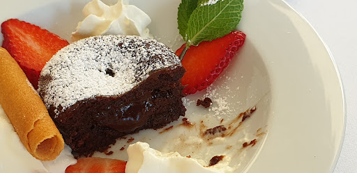 Das abgebildete Schokoküchlein mit flüssigem Kern: granatenstark! Auf Wunsch mit einer Kugel Vanilleeis zusätzlich.