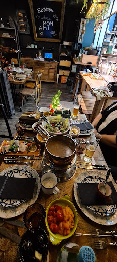 Gestern im Rahmen einer geschlossenen Gesellschaft für eine Weihnachtsfeier dort gewesen! Das Restaurant liegt inmitten der Remscheider Altstadt. Von außen ein sehr schönes Fachwerk Haus. Innen sehr gemütlich und direkt einladenes Ambiente! Wir saßen in einem sehr schönen Raum, der Tisch geschmackvoll gedeckt! Zum Essen kann man nur sagen sehr lecker. Es gab ein Fondue Menü! Den Anfang machte ein Gruß des Hauses in Form einer kleinen Tasse mit einem Krustentierschaumsüppchen! Zu erst gab es danach eine kleine Platte mit versiedenen Fischsorte, die in einem Fischfond als Fondue selbst zubereitet werden konnte. Dazu gab es kleine Kartoffeln und diverse Dips und Saucen. Desweiteren wurde Salat dazu gereicht zu dem es zwei Salatsaucen angeboten wurde. Der nächste Gang war wieder ein Fondue mit Kraftbrühe und verschiedenen Fleischsorten die darin selber zubereitet werden konnte. Zum Desert gab es ein Schokladenfondue mit Früchte. Dieses ganze Menü war neu für mich und es war sehr lecker, die Idee zu diesem Fonduemenü war etwas neues für mich und sehr lecker! Zwischen den verschiedenen Gängen gab es genug Zeit sich zu unterhalten. Das ganze Menü hat wunderbar geschmeckt, sämtlich Zutaten waren super aufeinander abgestimmt und von hoher Qualität. Das Personal war sehr freundlich und aufmerksam, hat Fragen beantwortet und jeden Gang vorher erklärt! 👍👍 Es war ein sehr gelungener Abend und wir haben uns sehr wohl gefüllt. Somit kann ich das Mon Ami nur wärmstens weiter empfehlen. Werde es mit Sicherheit wenn man in der Nähe von Remscheid bin...